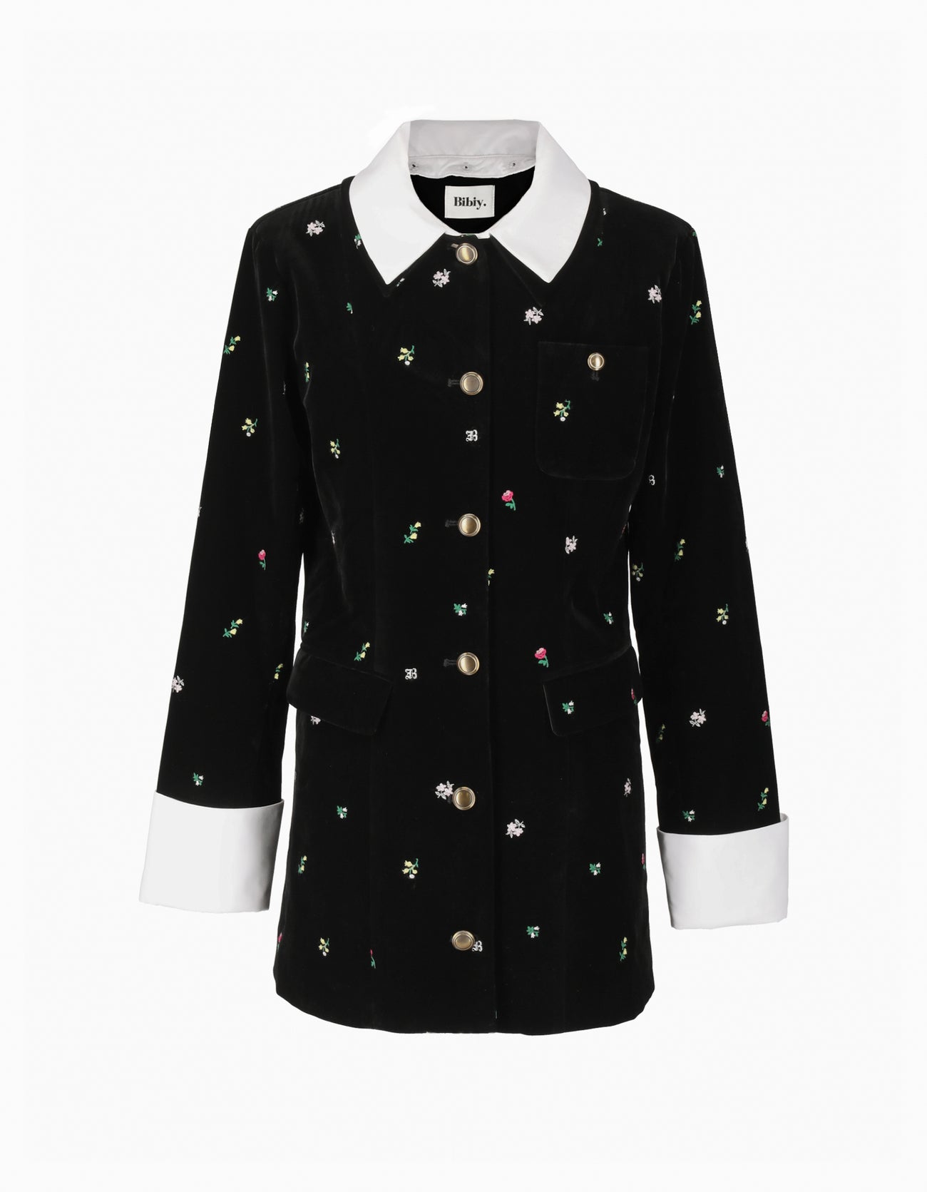 Bibiy. This collection features luxuriously decorated original floral embroidery, drawn for the 25AW collection. The high-quality velvet fabric is delicately embroidered with five types of flowers and "B" initials, creating a sophisticated design that reduces the sweetness to the right extent. We also pay attention to the color arrangement and the shape of B, and some parts are weaved with silver glitter thread to add an elegant shine.