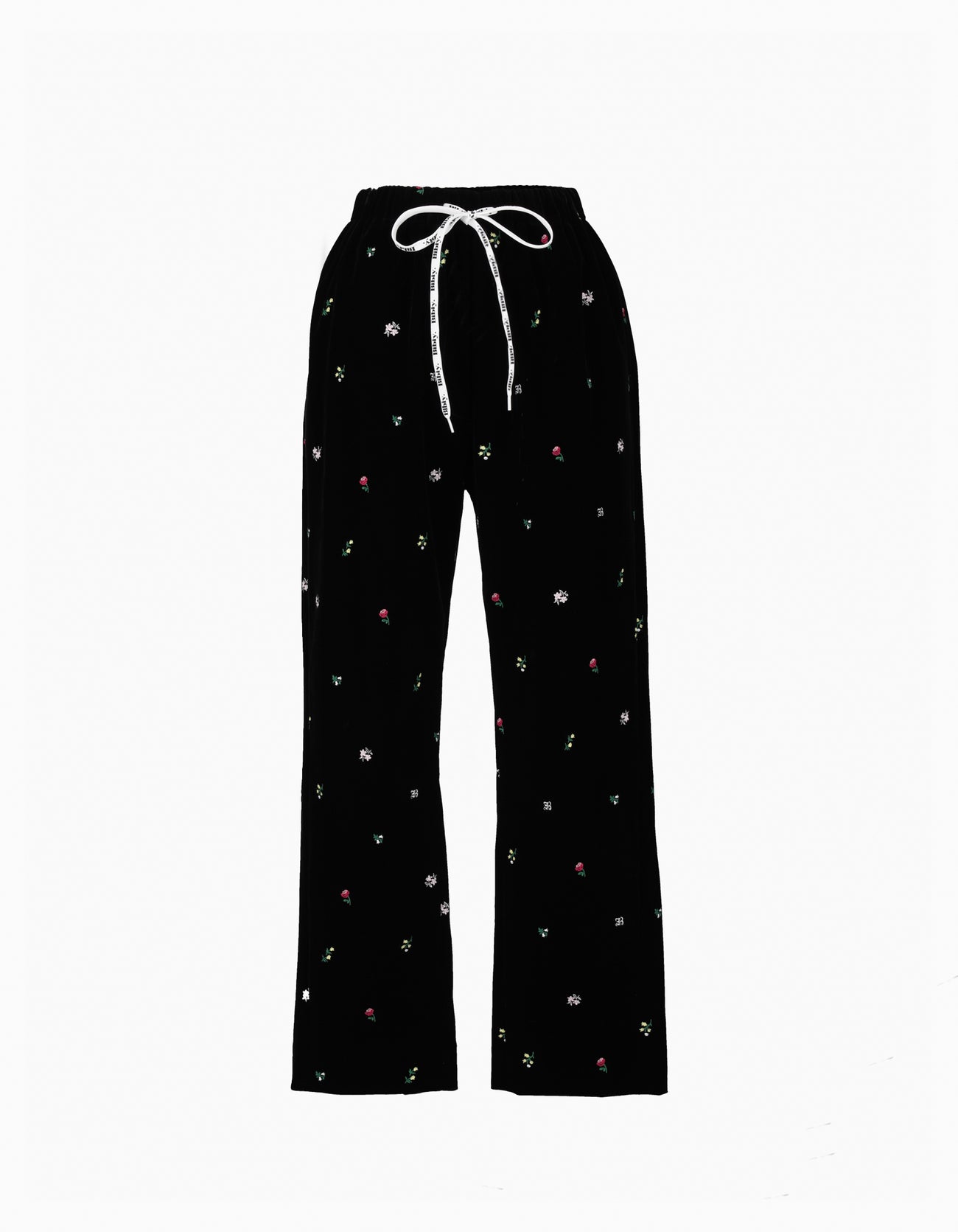 Bibiy. 25AW 컬렉션을 위해 특별히 제작된 오리지널 꽃 자수로 고급스럽게 장식된 컬렉션입니다. 고급스러운 벨벳 원단에 다섯가지 꽃과 이니셜 "B"를 섬세하게 자수하여 적당한 달콤함을 더한 세련된 디자인을 연출합니다. B의 컬러 배치와 형태에 특히 신경썼으며, 일부 부품에 은색 글리터 실을 추가해 우아한 광택을 더했습니다.