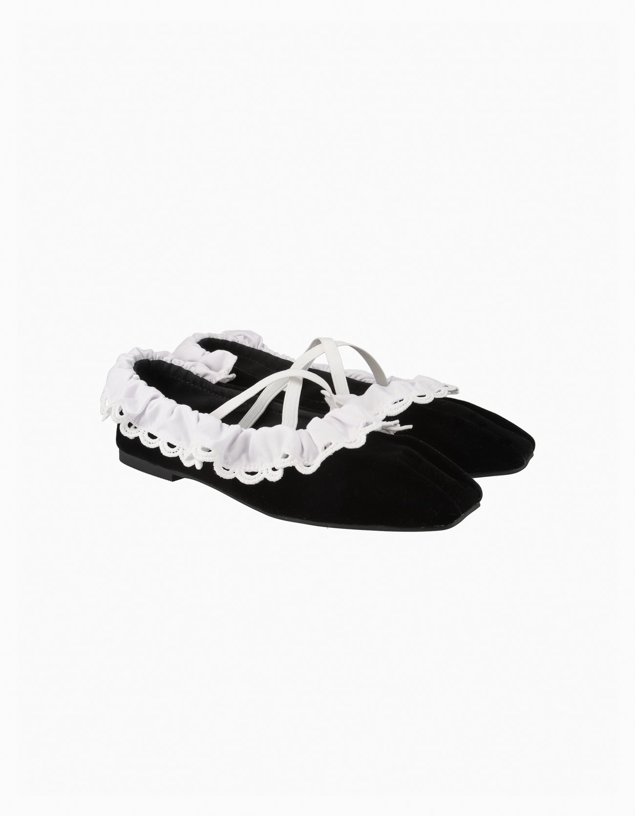 섬세한 피코 레이스 프릴이 발에 우아함을 더해주는 발레 슈즈입니다. 스퀘어 토의 깔끔한 실루엣에 러플을 듬뿍 레이어링해 우아하면서도 여성스러운 뉘앙스를 연출합니다. 발등 부분은 고무 소재로 되어 있어 발에 부드럽게 피트되며, 칼라 부분의 리본으로 프릴의 강도를 세밀하게 조절할 수 있습니다. 외관뿐만 아니라 편안함에도 신경을 썼습니다. 밑창에는 Bibiy.의 오리지널 "B"가 자수되어 뒷면에 은은한 특별한 느낌을 더해줍니다. 클래식한 블랙과 화려한 레오파드의 두 가지 색상으로 제공됩니다. 비비만의 유니크한 발레슈즈는 달콤함과 세련된 디자인이 완벽한 조화를 이루는 제품입니다. XL 사이즈는 현재 예약 주문이 가능하며, 더욱 폭넓은 분들이 착용하실 수 있습니다.