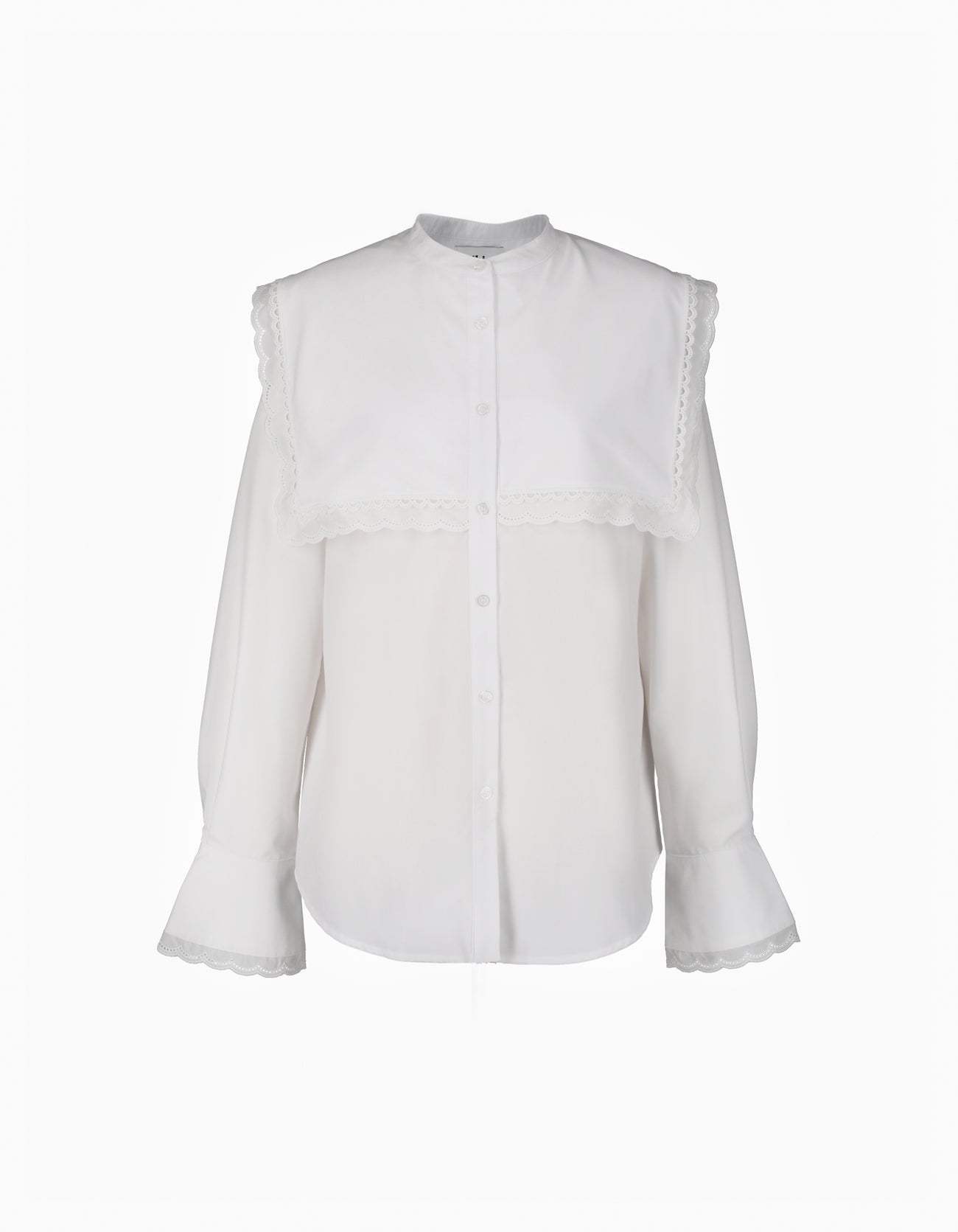 얼굴에 가벼운 스카프처럼 보이는 칼라가있는 정교한 디자인 셔츠. 세일러 칼라는 두 개의 다른 재료면 테이프로 장식되어 있으며 흰 셔츠에 미묘한 비비 느낌을 더합니다. 커프는 고의적으로 느슨하고 자연스럽게 퍼지는 커프는 손에 우아한 뉘앙스를 만듭니다. 네크 라인에는 달콤한 칼라와 슬리브를위한 스탠드 칼라가있어 깔끔한 균형을 제공합니다. 3 차원 자수 칼라는 또한 스타일에 인상적인 악센트를 더합니다. 재킷이나 가디건을 착용하고 칼라를 엿볼 수있게하면 층의 범위를 확장 할 수도 있습니다. 이 작품은 미니멀하지만 섬세한 장식이며 Bibiy의 전형적인 우아함을 제공합니다.