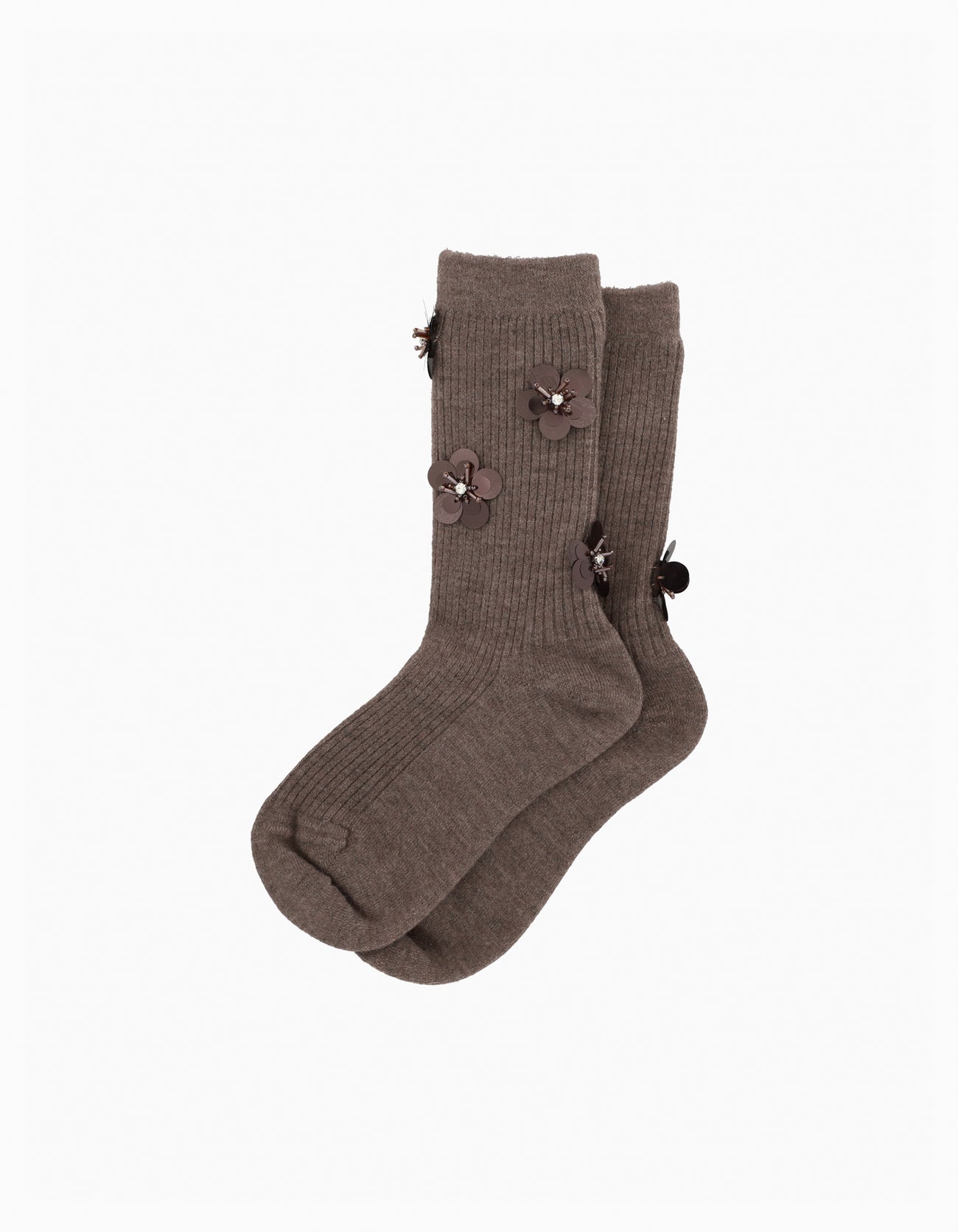 贅沢にビジューをあしらった、特別感のあるソックス。足元にきらめきを添えることで、シンプルなスタイリングも一気に華やぎます。カラーごとに異なるビジューのデザインが魅力で、ブラウンはランダムに散りばめられたデザインでフェミニンなムードに、グレーは気品漂う2連の配置でクラシカルな印象を演出。コンパクトな丈感で、カジュアルなスタイルからドレスアップまで幅広く馴染みます。デイリーから特別なシーンまで、足元からスタイルを格上げしてくれる一足です。