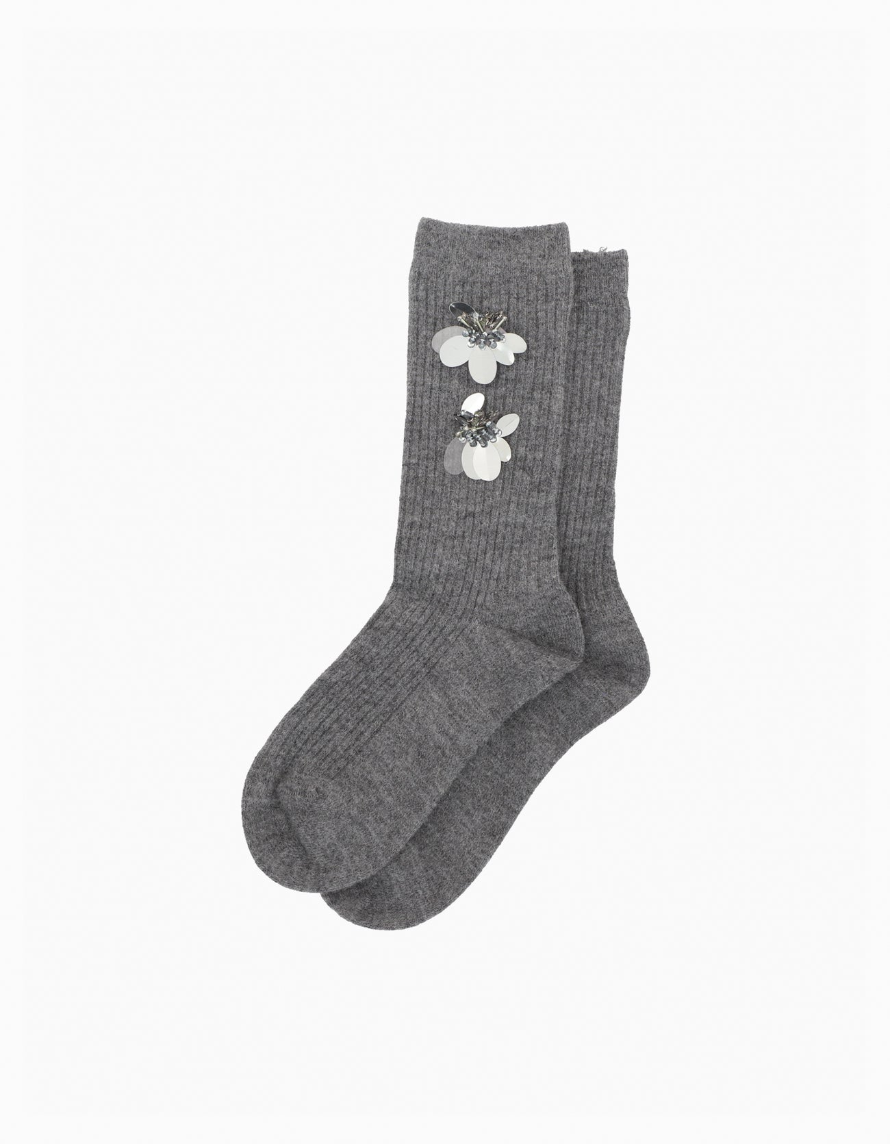 贅沢にビジューをあしらった、特別感のあるソックス。足元にきらめきを添えることで、シンプルなスタイリングも一気に華やぎます。カラーごとに異なるビジューのデザインが魅力で、グレーは気品漂う2連の配置でクラシカルな印象に、ブラウンはランダムに散りばめられたデザインでフェミニンなムードを演出。コンパクトな丈感で、カジュアルなスタイルからドレスアップまで幅広く馴染みます。デイリーから特別なシーンまで、足元からスタイルを格上げしてくれる一足です。