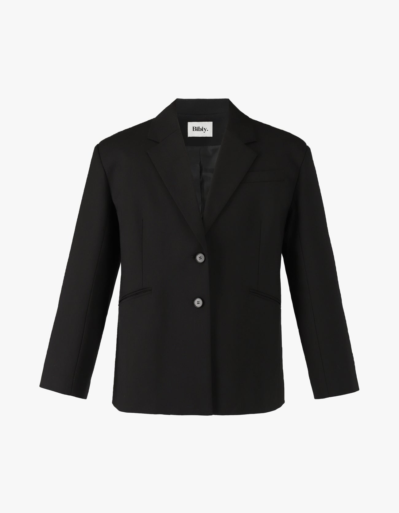 肩には適度な厚みのあるパッドを仕込み、立体的なシルエットとともに、上品でハンサムな印象を演出します。後ろのネックラインには星形のスタッズをあしらい、さりげない遊び心をプラス。左カフスにはBibiy.のロゴ刺繍を入れ、華奢なボタンを連ねることで、シンプルながらもディテールにこだわりを。生地はパリッとしすぎない程よいハリ感があり、羽織るだけで美しいフォルムを保ちつつ、上品な存在感を放ちます。センターバックにはベンツを入れ、シルエットの美しさと動きやすさを両立。見た目のデザイン性だけでなく、着心地の良さにも配慮した一着です。