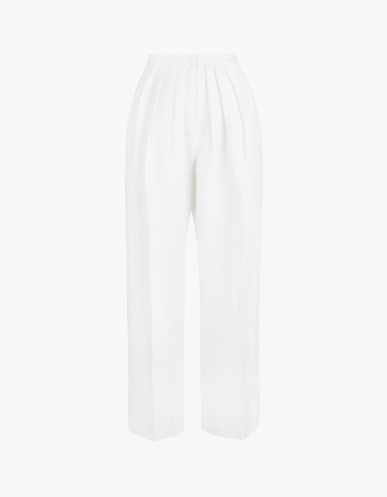 フォーマルな印象のスラックスにフロントのタックデザインでカジュアル感をプラス。