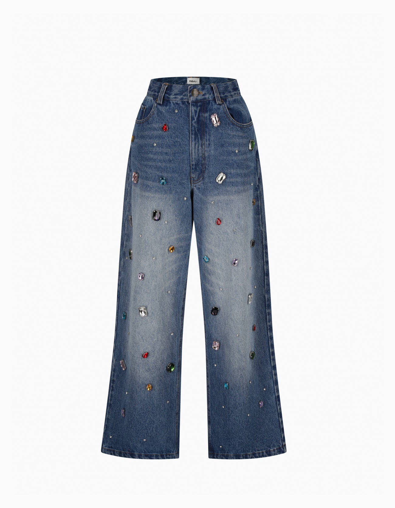 煌びやかなカラフルビジューが存在感を放つローウエストのワイドシルエットデニム。小粒のビジューから、形やカラーの異なる大ぶりなビジューまでを贅沢にあしらっており、唯一無二なデザインが目を惹く特別な一本に。裾に近い部分には大きなビジューを配置せず、丈詰めが可能な仕様に仕上げており、お好みのレングスにカスタマイズしていただけます。背面にはデニムシリーズ定番のBibiy.パッチを施し、今季はデニム全モデルに統一したオリジナルボタンを採用。細部にまでこだわりを込めた一本に仕上げました。