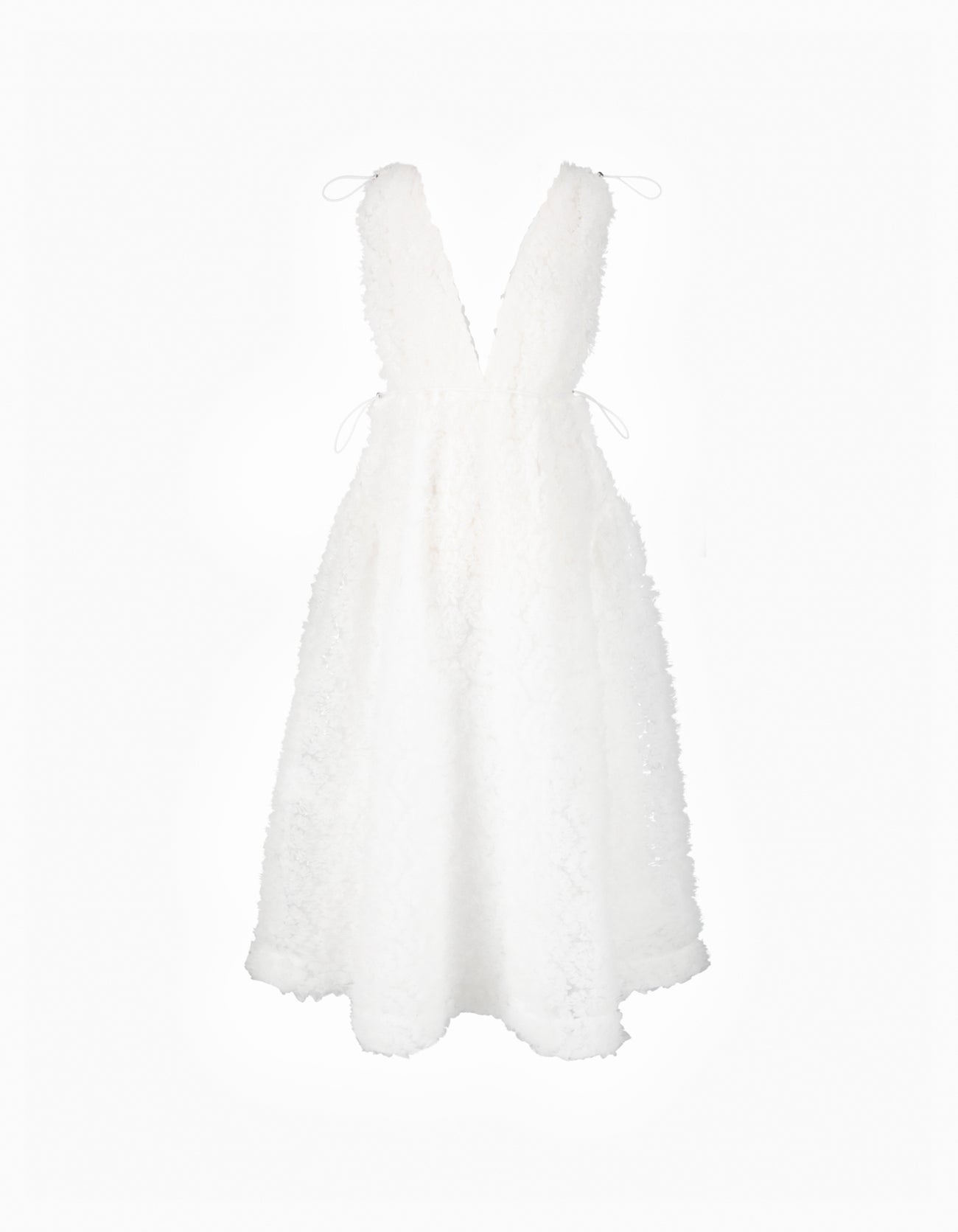 上質で繊細なチュール生地を贅沢に使用した、華やかさと存在感を兼ね備えたワンピース。透明感のある軽やかなチュールが、動くたびにふわりと揺れ、視線を惹きつける一着。纏うだけで特別感があり、フォーマルなシーンからパーティーまで幅広く活躍します。ウエストと肩にはドローストリングを採用し、お好みのフィット感に調整可能。さらに、ウエスト部分はゴム仕様となっており、長時間の着用でもストレスフリーで快適にお過ごしいただけます。ディテールから着心地までこだわり抜かれた、Bibiy.らしいフェミニンさと高揚感を纏える特別な一枚です。