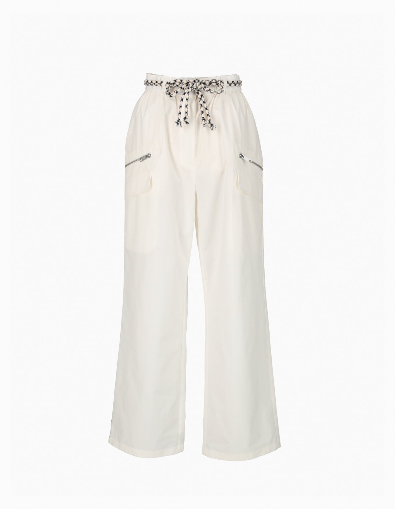 Bibiy.の世界観に新たな一面を添える、洗練されたテックスタイルパンツ。艶やかで軽やかなナイロン素材を使用し、動きに合わせて揺れる光沢が洗練された抜け感を演出。シャカっとした風合いがありながらも、どこか品のある表情が、Bibiy.ならではのスタイルに。ウエストはゴム仕様で快適なフィット感があり、フリーサイズで3色展開。大胆なハイウエストと美しいワイドシルエットにより、脚長効果も抜群。太ももにはアクセントになるファスナーポケットを配置し、見た目の美しさだけでなく実用性にも配慮しました。ウエストのロープコードは、3カラーそれぞれで配色を変えており、カラーごとの個性が引き立つ仕上がりに。スタイリングに遊び心をプラスしながらも、全体のバランスを引き締めてくれます。